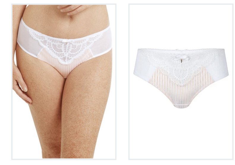 Finish your Karolina look with this Karolina panty in a matching color. With rich lace detailing in a fan optic and a unique stripe fabric all the way to the back, the Karolina panty will be one of your favorites (we bet you’ll save it for special occasions). A sweet satin bow and golden pendant add that extra feeling of luxury. The panty matches any of the pocketed bras in our Karolina group, and fits beautifully just below your waist. A coordinating lingerie set makes you feel pretty.