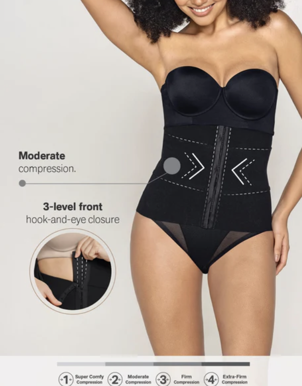 This incredible waist cincher made with our super comfy compression SkinFuse® fabric features flexible boning on the sides and back for extra support. It’s functional and discrete! You can wear it all day, every day, since it has no noticeable seams, making it invisible under clothes. We guarantee the highest quality and comfort from this piece because you deserve the best. You can wear it daily to improve your posture, during workouts at the gym, after surgery, or postpartum.