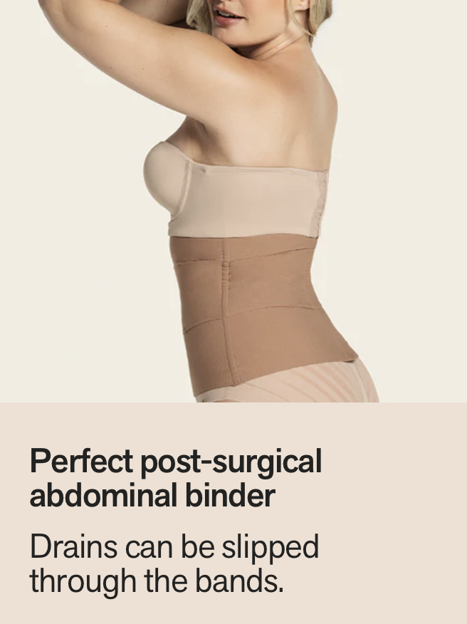 - Can also be worn for post-surgical recovery: any drains can be passed through the gaps between the belts.