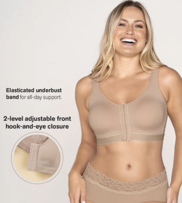 - 2-level adjustable front hook-and-eye closure for easy wear.